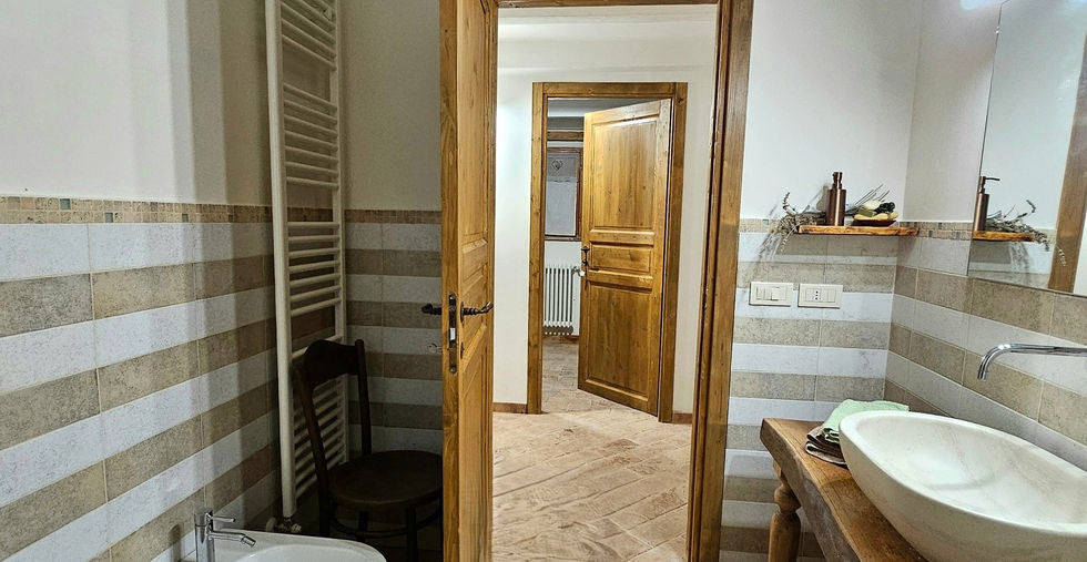 The large brick fireplace and ancient tiles dominates the living area, creating an atmosphere of times gone by. Communicating with the living room we enter the spacious and comfortable country chic style kitchen from which we can go up to the attic into a spacious double bedroom with bathroom or go down to the lower floor where there are two other double bedrooms with external bathroom and a comfortable Finnish-style sauna built made of fir wood with old naval methods and equipped with LED lights and emotional shower. Going down one more floor there are the technical rooms and the cellar as well as a room to be used as a second kitchen or living room. The interiors of the farmhouse are welcoming and functional thanks to the skilful renovation in 2015 where the choices of materials to be used and the combinations were accurate and original: the ceilings with tiles and exposed beams stand out with the external lighting, the wooden floors natural Tuscan terracotta and solid oak wood. The recovery and restoration of the original doors with the conservation of latches, hinges and nails also make the property unique.